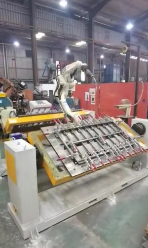 河北變位機廠家分享國外客戶采購產品的調試現場案例。客戶本次采購的是單軸頭尾架變位機,負載300kg,重復精度0.1mm,配套的是otc焊接機器人。焊接構件是不銹鋼護欄、框架等產品。